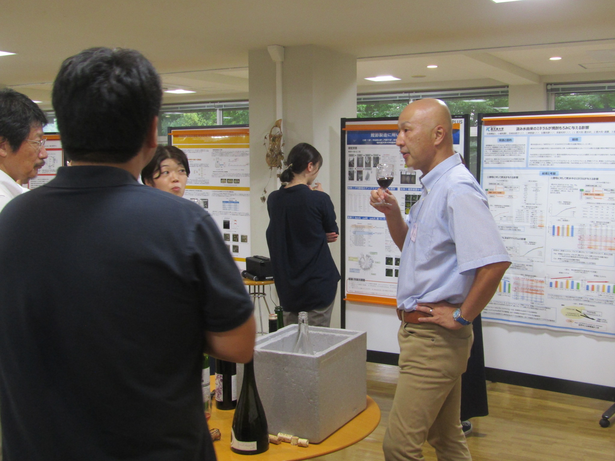 鹿児島大学農学部付属焼酎・発酵センタ―、新潟大学日本酒学センター、山梨大学ワイン科学研究センターのそれぞれの学生が行っている卒業研究について、ポスター発表を行っていました。