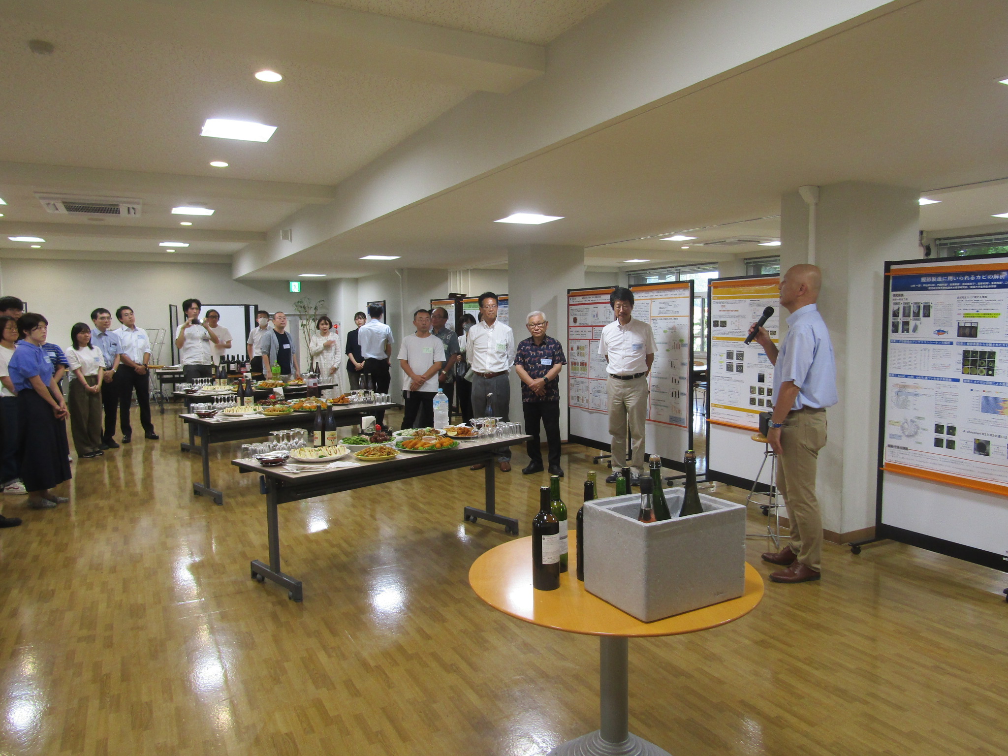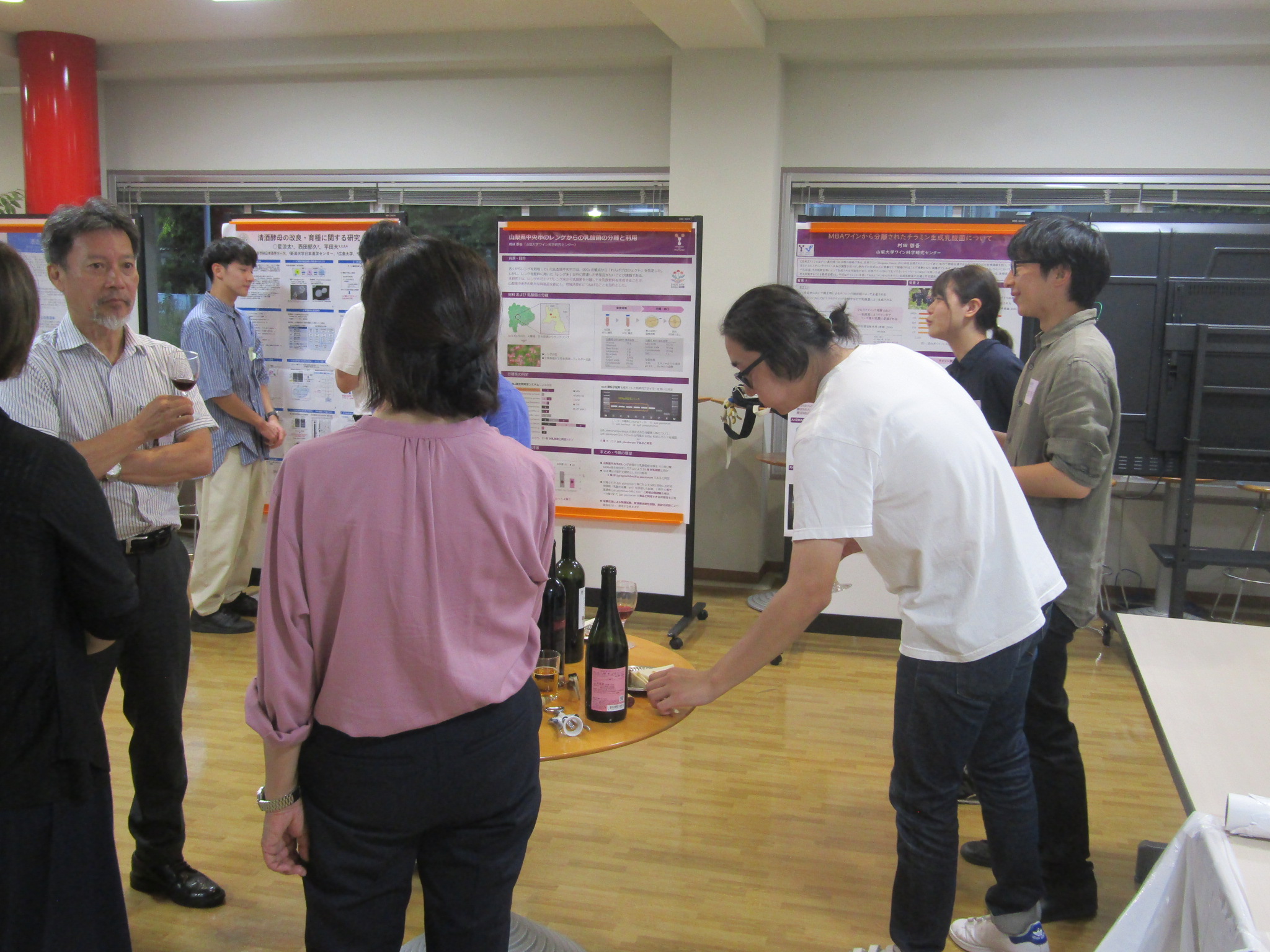 🍷こちらの交流会では、20本のワインのテイスティングと料理が用意され、皆さんワインを片手にポスターについて質問するなど交流を楽しんでいました。明日の「日本の酒シンポジウム」への団結も図れました。これからの3大学の発展に乾杯です!🍶