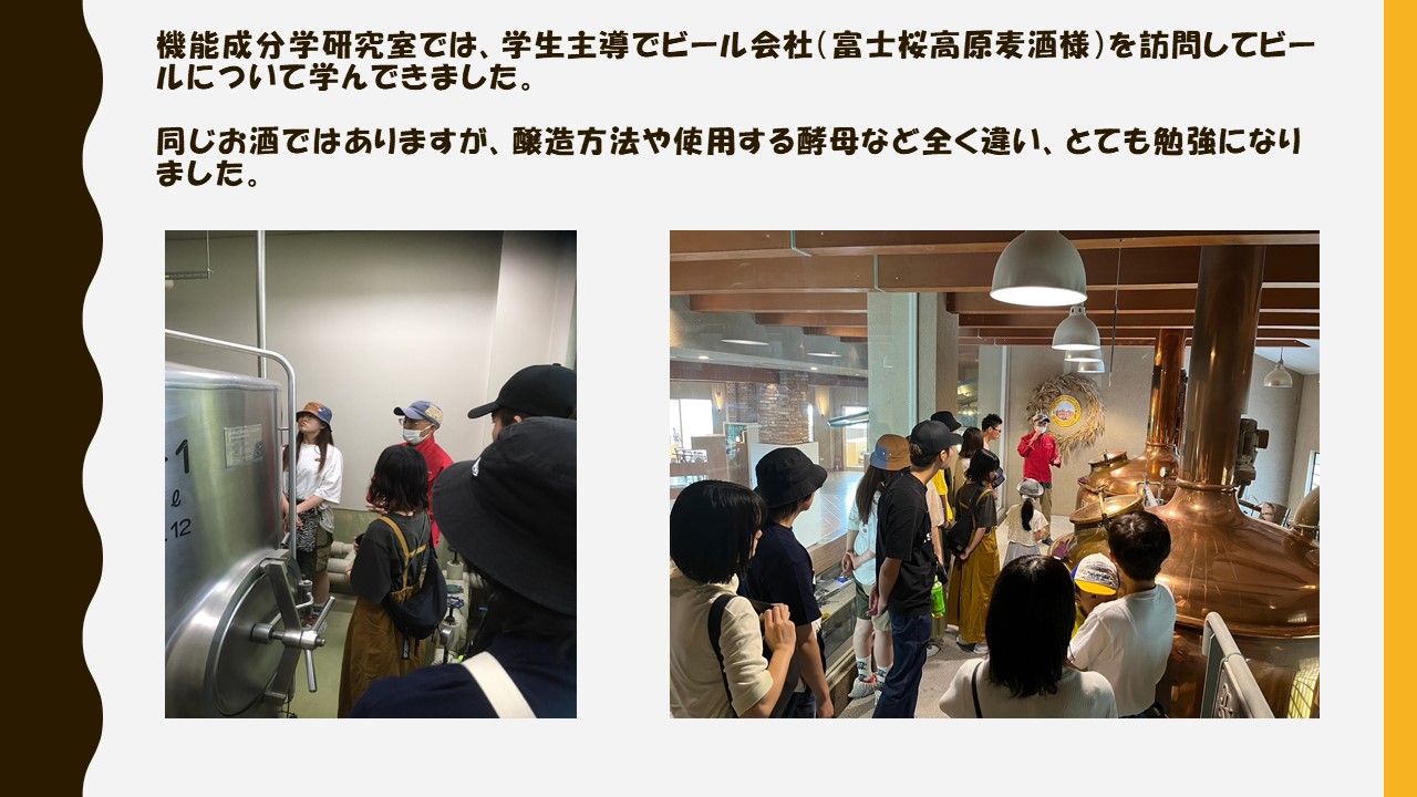 🍺機能成分学研究室では、学生主導でビール会社(富士桜高原麦酒様)を訪問してビールについて学んできました🍻
