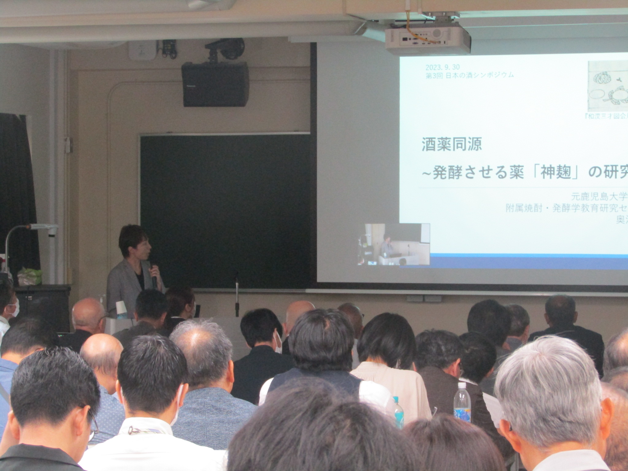 鹿児島大学農学部附属焼酎・発酵学教育研究センター及び新潟大学日本酒学センターと「第3回日本の酒シンポジウム楽酒~焼酎・日本酒・ワイン~日本酒を語る」を開催し、本会場(山梨大学)とオンライン参加者を合わせて168名が参加しました。